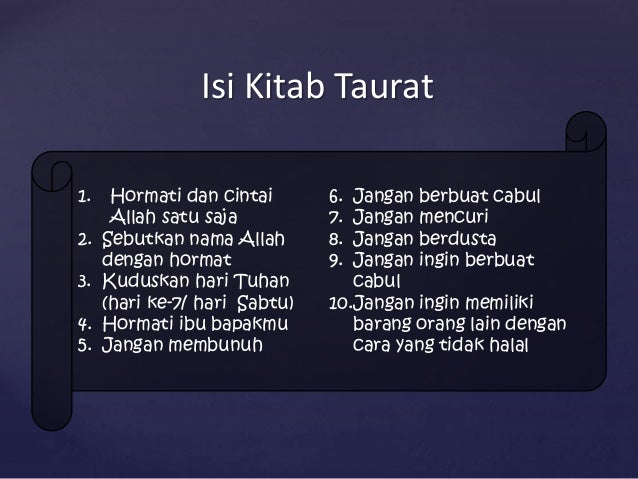 | Baca: 10 Isi Pokok Kitab Taurat |